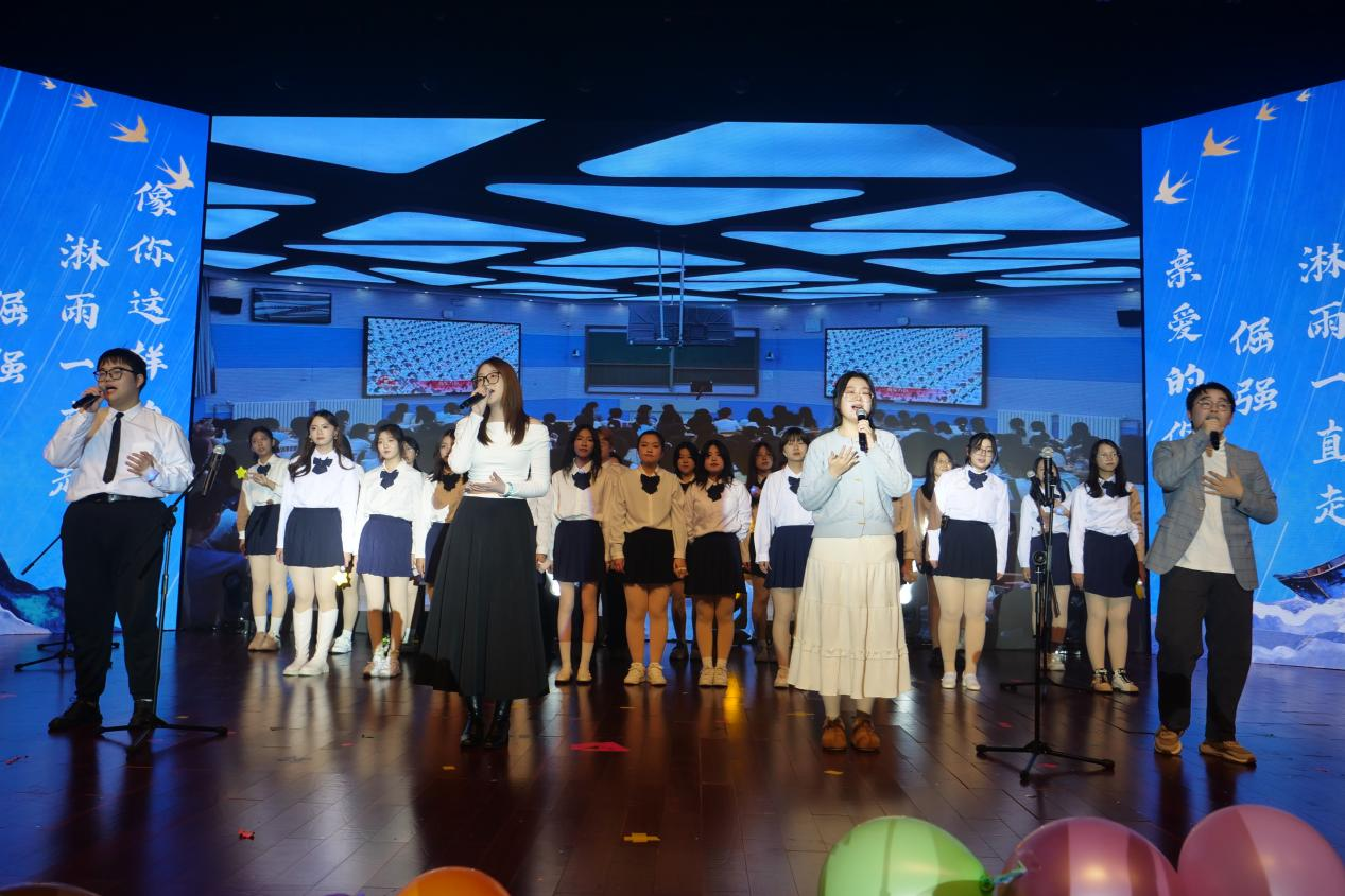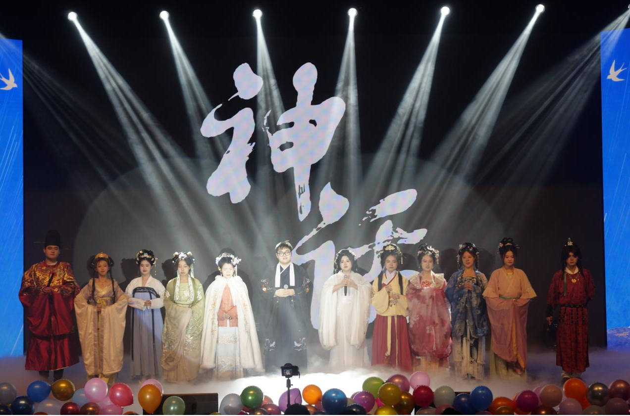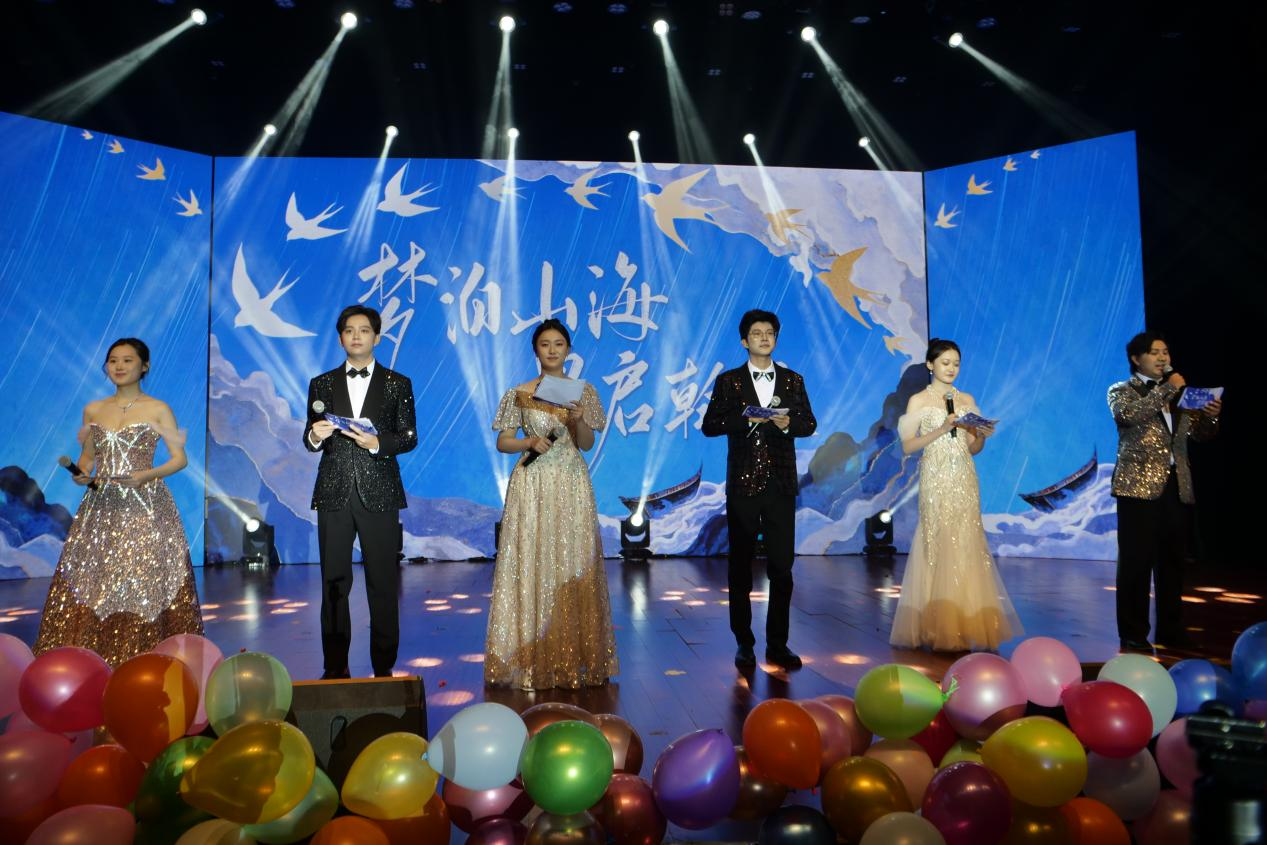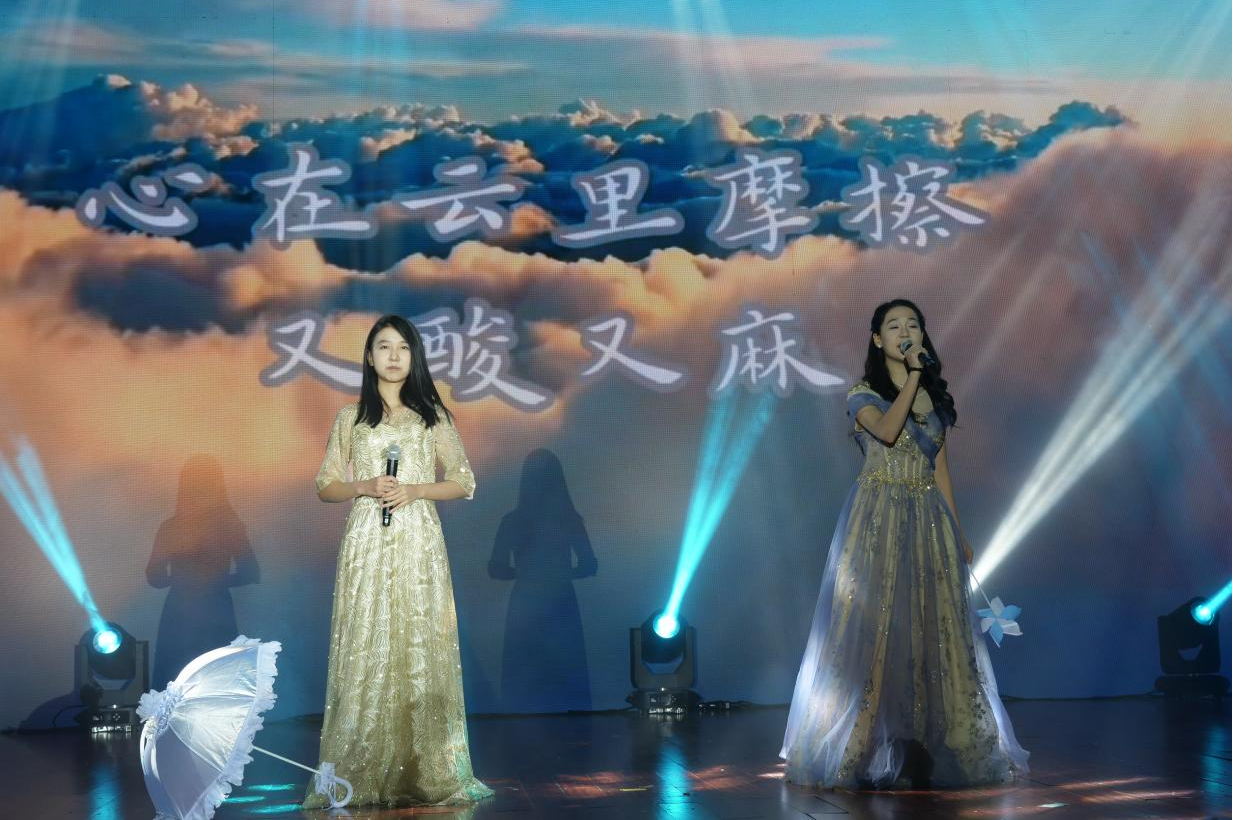 艺韵融文脉,青春展风华。汉服展演《衣声和鸣·美丽的神话》袍裾翩跹,尽显国风古韵与文化底蕴,让观众沉浸式感受艺术之美与文化之韵;小品《大考结束那一天》妙趣横生,引来阵阵笑声;歌曲串烧《普通朋友》《恶作剧》满是青春青涩记忆;舞蹈《Feel My Rhythm》节奏明快,甜酷风格收获阵阵掌声;合唱《亲爱的你啊》《倔强》《淋雨一直走》《像你这样的朋友》旋律温暖激昂,唱出青年追梦的坚定与同窗情谊的真挚。光影流转间,晚会临近尾声,《路过人间》悠扬舒缓的歌声流淌在音乐厅的每个角落,似在诉说人生路上的相遇与别离、成长与感悟,在温柔的旋律中,晚会圆满落幕。