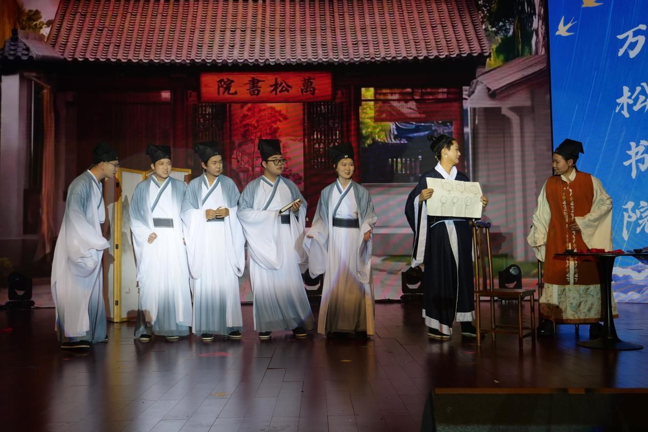 弦歌传暖意,舞影动清欢。歌曲《戒伞》唱腔缱绻,渐涌磅礴力量;舞蹈《Yes Or Yes》活泼灵动,尽显少女朝气;小品《万松书院》构思精巧,幽默风趣藏温情;歌曲《失恋无罪》情感饱满,直击人心;舞蹈《惊鸿一面》舞姿翩跹,雅致唯美醉人心;王萌倾情献唱歌曲《背包》,歌声温润,既藏着岁月沉淀的初心,更饱含对学子的殷切期许,熟悉的旋律与真诚的演唱,让台下学子静心聆听,为晚会注入了格外浓厚的暖意;歌舞串烧《我们的歌》《奇思妙想喜羊羊》,节奏明快、风格活泼,动感舞姿搭配欢快歌声,尽显青春的鲜活与热烈,让现场热度持续升级,掌声与欢呼交织成海。