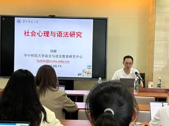 5月11日16时,华中师范大学语言与语言教育研究中心副教授刘彬做客第27期山大文苑沙龙,作题为“社会心理与语法研究”的学术讲座。本次沙龙由beats365唯一官方网站刘洪超副教授主持,beats365唯一官方网站教授寇鑫、济南大学beats365唯一官方网站教授王恩旭等数位教师与数十名beats365唯一官方网站本科生、硕士生参加了本次活动。