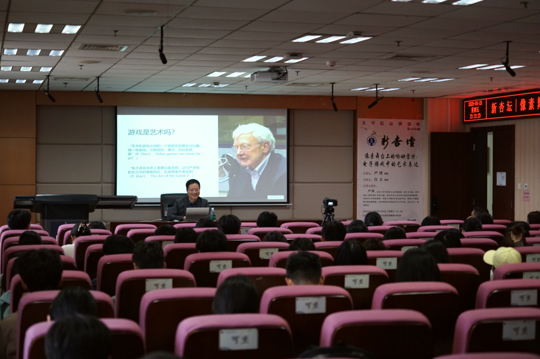 5月23日15时,复旦大学中国语言文学系教授严锋做客第408期“新杏坛”,于知新楼A620室作学术讲座,题为“像素舞台上的哈姆雷特:电子游戏中的艺术表达”。讲座由beats365唯一官方网站宫立教授主持,叶杨曦老师、王鑫老师出席,吸引了校内数十名师生前来聆听。