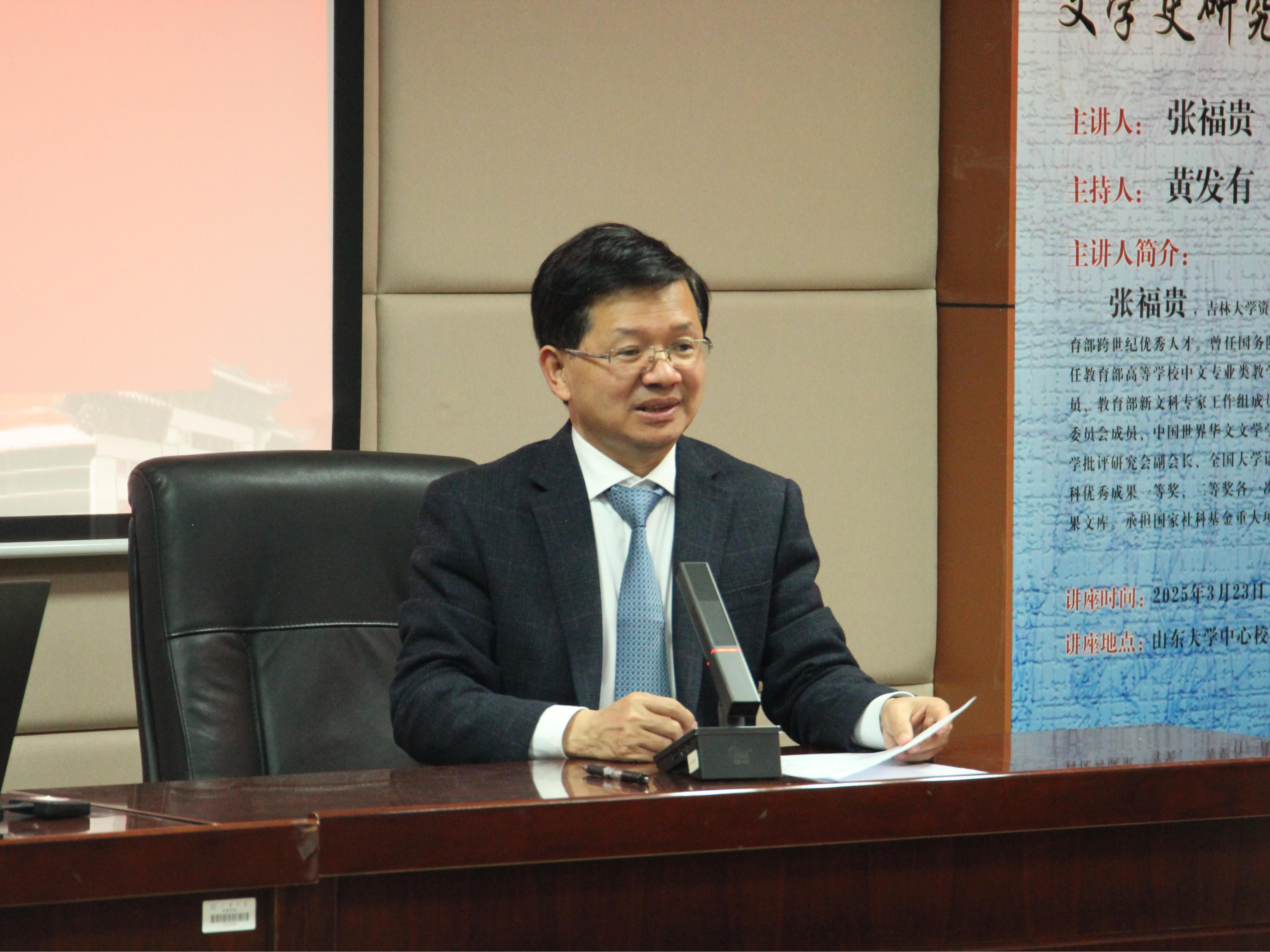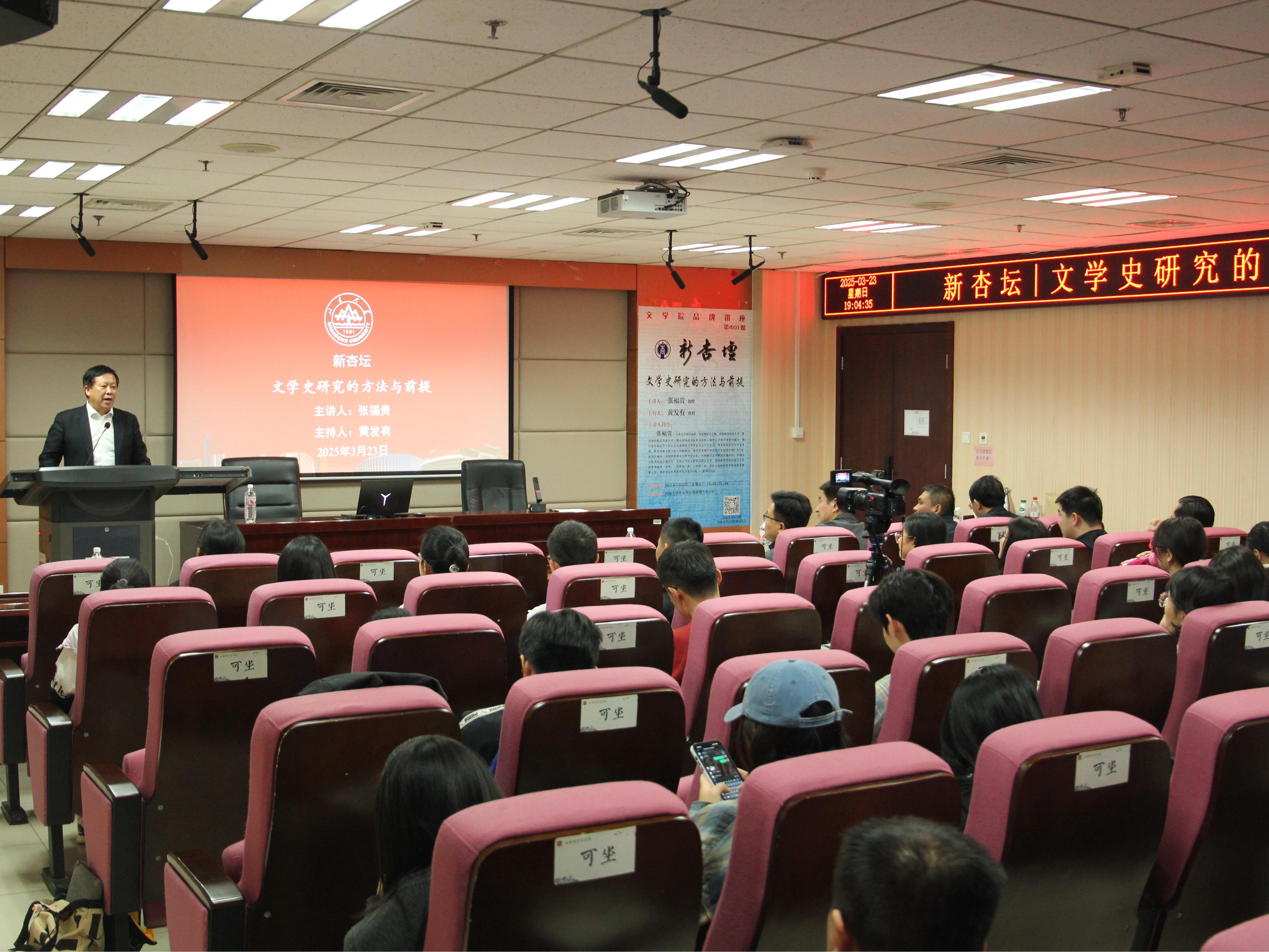 3月23日晚19时,吉林大学张福贵教授做客第401期“新杏坛”,于知新楼A620室作学术讲座,题为“文学史研究的方法与前提”。讲座由黄发有教授主持,公司党委书记郭春晓以及马兵教授、宫立教授、史建国教授、尹林研究员出席,吸引了校内外众多师生前来聆听。