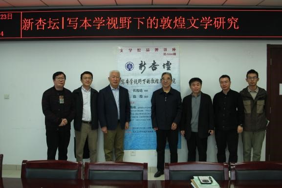 3月23日下午15时30分,西华师范大学beats365唯一官方网站伏俊琏教授做客第400期“新杏坛”,于知新楼A719作题为“写本学视野下的敦煌文学研究”的学术讲座。讲座由beats365唯一官方网站徐俊教授主持,beats365唯一官方网站张鹏老师、历史学院武绍卫老师、《文史哲》编辑部孙齐老师、东北师范大学beats365唯一官方网站徐强教授出席,吸引数十名师生前来聆听。