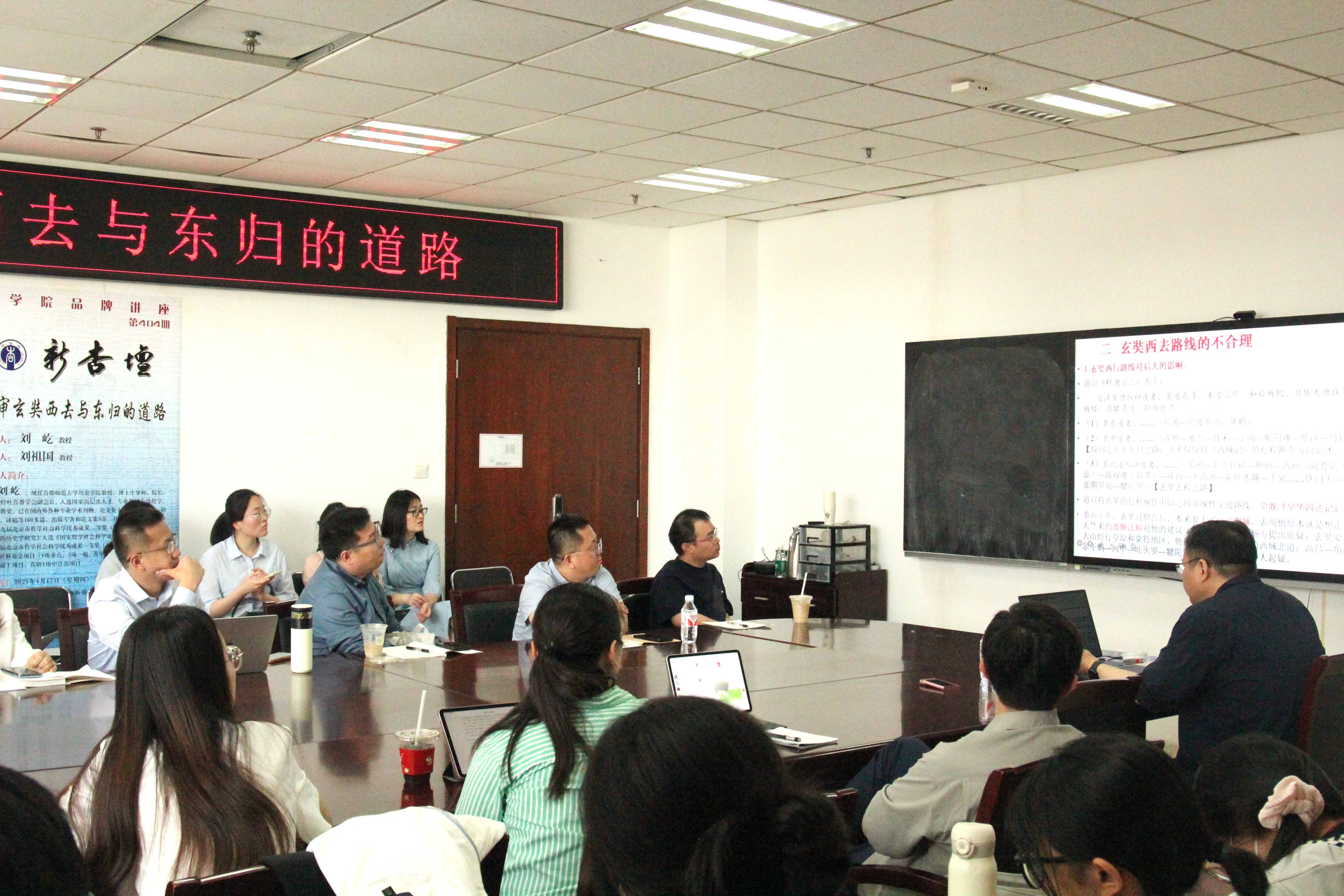 4月17日下午3时,刘屹教授做客第404期“新杏坛”,于知新楼A719室作学术讲座,题为“重审玄奘西去与东归的道路”。讲座由刘祖国教授主持,beats365唯一官方网站张鹏老师、王涵老师,历史学院武绍卫老师、霍艳芳老师,《文史哲》编辑部孙齐老师,哲学与社会发展学院颜峻老师出席,吸引30余名师生前来聆听。