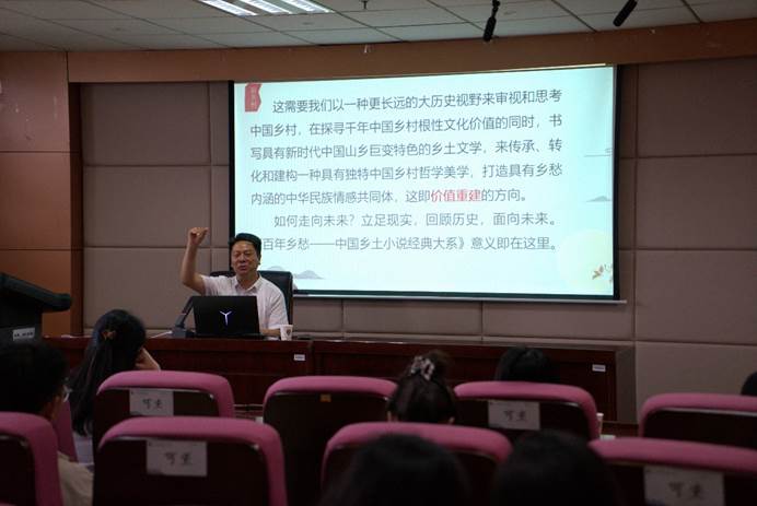 之后,张丽军老师深入探讨了乡土文学的历史脉络与当代价值。他指出,从古代的田园诗到现代的乡土小说,乡村一直是文学创作的重要源泉。鲁迅、沈从文、赵树理等作家的经典作品,不仅记录了乡村的历史变迁,更深刻反映了乡村社会的文化内涵。张老师强调,随着城市化进程的加速,乡村面临着前所未有的危机,但乡村的价值与意义并未消失。他呼呼通过文学创作与研究,重新审视乡村文化,保卫乡村。