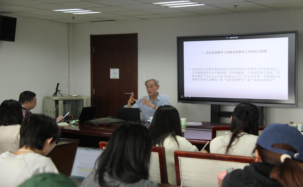 2024年11月8日下午3时,由福建师范大学外国语学院特聘教授、复旦大学中文系教授杨乃乔讲授的、题为“文学阐释学的语言陷阱与汉字思维———论‘Ontologie’的词源学系谱及诠释学的署名权”的学术讲座于知新楼A座906教室举行。本场讲座由杨建刚教授主持,叶杨曦副教授、王涵助理研究员及众多硕博研究生参与其中。