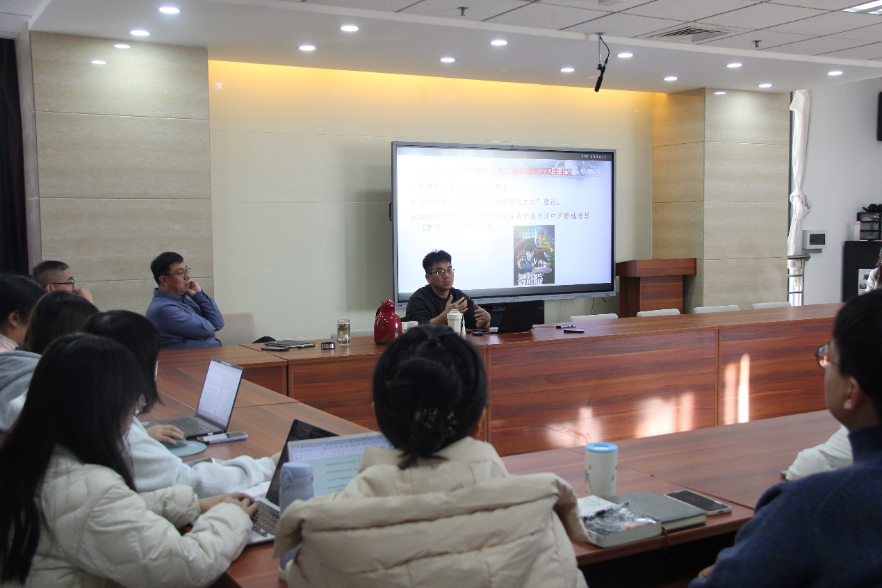 12月5日下午三点,华中师范大学黎杨全教授在知新楼A座606室做题为“游戏现实主义与跨次元批评”的学术讲座,讲座由杨建刚教授主持,韩清玉教授及众多硕博研究生参与座谈。