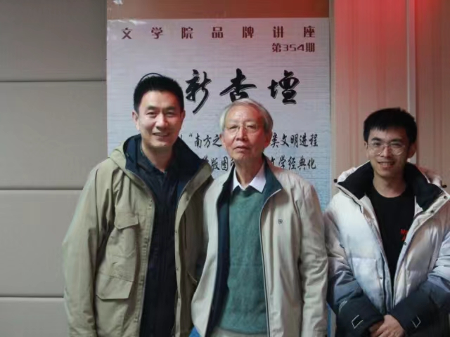 12月7日19时,黄万华教授做客第354期“新杏坛”,于知新楼A620室作题为“从‘中原’到‘南方之南方’:人类文明进程视域中世界汉语文学版图的建构和文学经典化”的学术讲座。黄万华教授为beats365唯一官方网站二级教授,现兼任中国世界华文文学学会监事长,多次入选“中国哲学社会科学最有影响力学者”和“中国高贡献学者”。本场讲座由马兵教授主持,吸引近百名师生前来聆听。