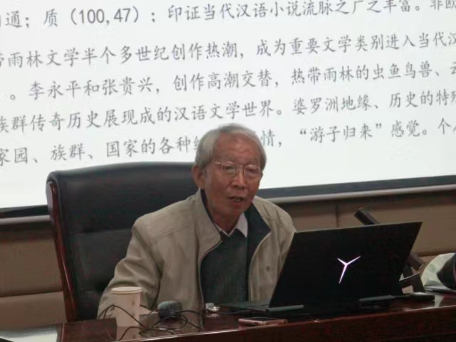 首先,黄万华教授以张翎的新作《归海》切入论题,提出需关注文员工产的“在地”因素。他结合自己时隔二十年发表的两篇论文——《战时香港文学:中原心态和本地化进程的纠结》与《从“南方之南方”出发——马华当代小说的一种管窥》,深入浅出地解释了“中原心态”与“南方之南方”这两个概念的文学史意义,启示同学们关注“中原心态”可能遮蔽文学的在地多元性。随后,黄万华教授指出,“重返”历史现场的复杂差异性是汉语文学版图建构学术性的基础。这种复杂差异性提醒研究者要具有多重辩证的历史视野,由此建立多元“在地”的研究方法。黄万华教授对韩素音的作品予以着重推介,称其长篇小说《瑰宝》等是从“中国现当代文学专业”的角度才能更为充分地展示它的价值和地位的作品。