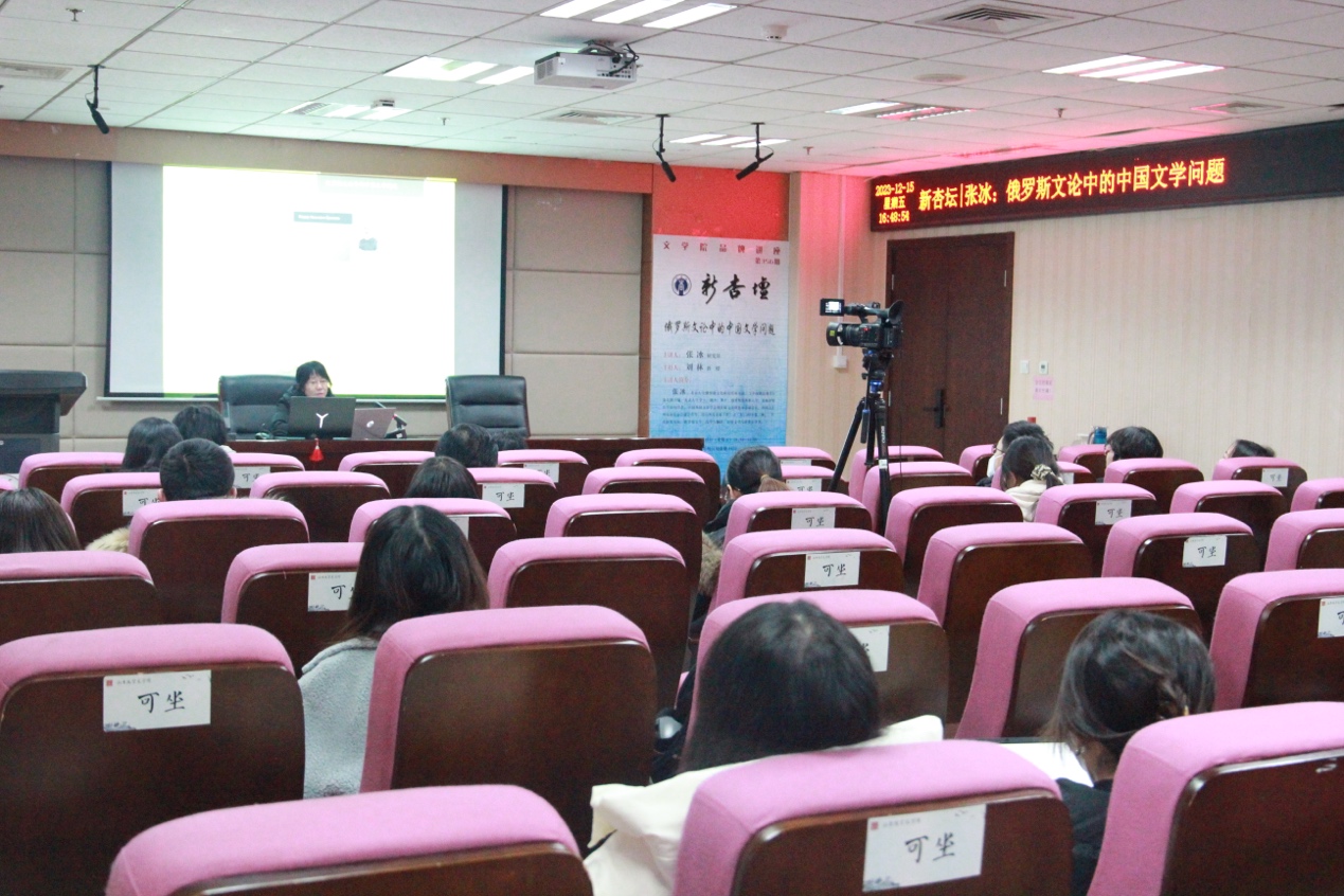 12月15日下午16时30分,北京大学俄罗斯文化研究所张冰教授做客第356期“新杏坛”,于知新楼A620室作学术讲座,题为“俄罗斯文论中的中国文学问题”。讲座由公司比较文学与世界文学研究所所长刘林教授主持,罗贻荣教授、陆浩斌老师出席,吸引了近百位师生前来聆听。