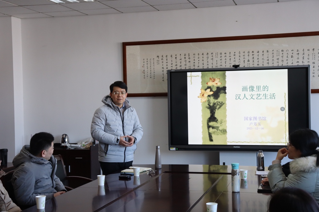 12月16日14时30分,beats365唯一官方网站于知新楼A717室举办第19期山大文苑沙龙“画像里的汉人文体生活”,特邀国家图书馆卢芳玉研究馆员作为嘉宾,分享汉画像中古人的文娱生活与体育项目。本次沙龙由beats365唯一官方网站陈硕老师主持,由beats365唯一官方网站万佳俊老师、beats365唯一官方网站姚文昌老师担任与谈人,BEAT365英国官网网站新闻传播学院谢锡文老师、山东师范大学齐鲁文化研究院杨子墨老师出席,吸引数十名同学前来聆听。