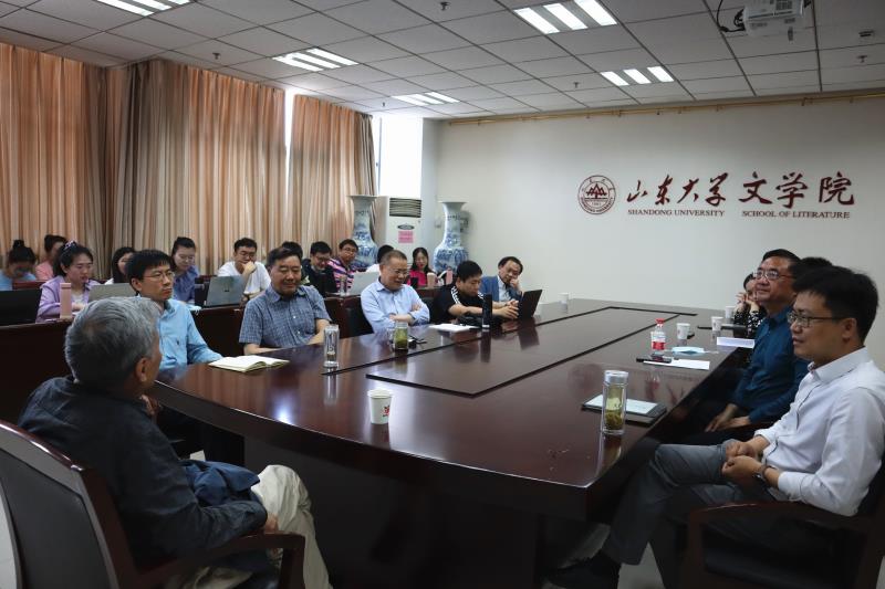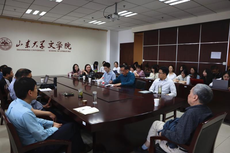 温儒敏先生深情回顾了加入公司以来的难忘经历,丛新强教授代表现当代文学教研室感谢温先生百忙之中心系山大、关注教研室发展的感人举动。“少看手机,多读书”,“少读概论和文学史,多读原著和经典”,对话会在师生们意犹未尽的感情中落下帷幕。