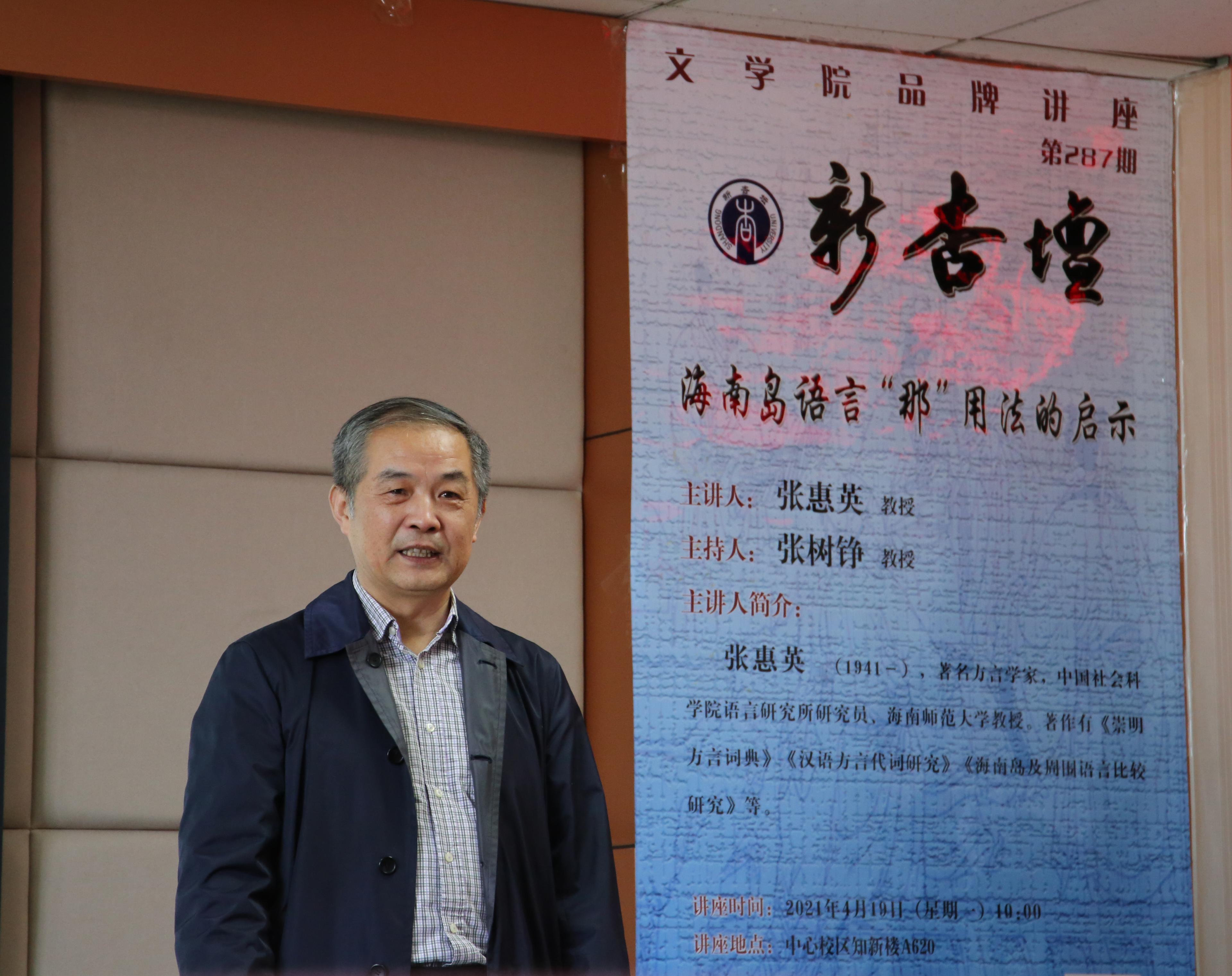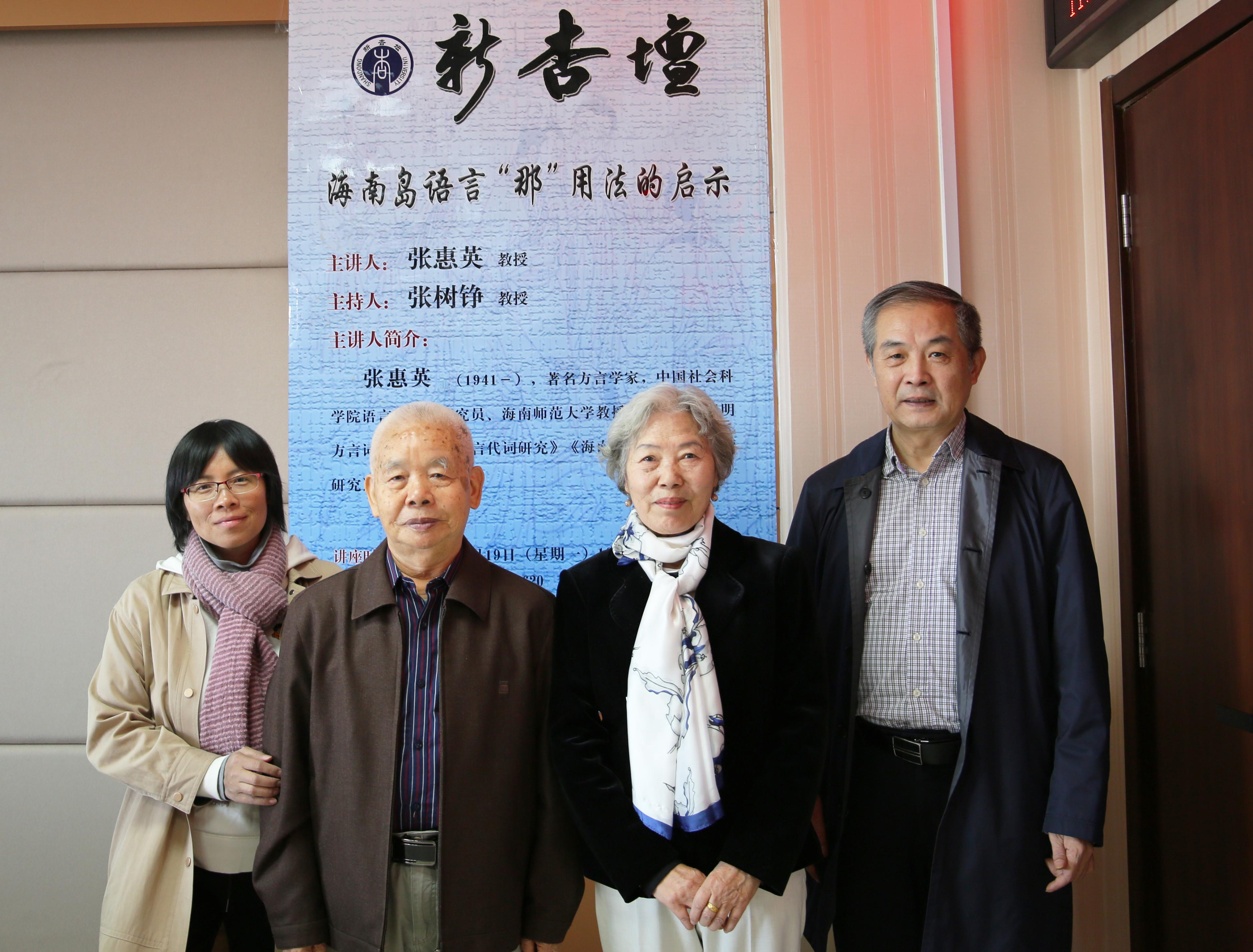 4月19日10时,著名方言学家、海南师范大学教授张惠英做客公司“新杏坛”,在知新楼A620报告厅作题为“海南岛语言‘那’用法的启示”的讲座。讲座由beats365唯一官方网站教授张树铮主持,副教授张燕芬以及beats365唯一官方网站众多员工共同聆听了本次讲座。