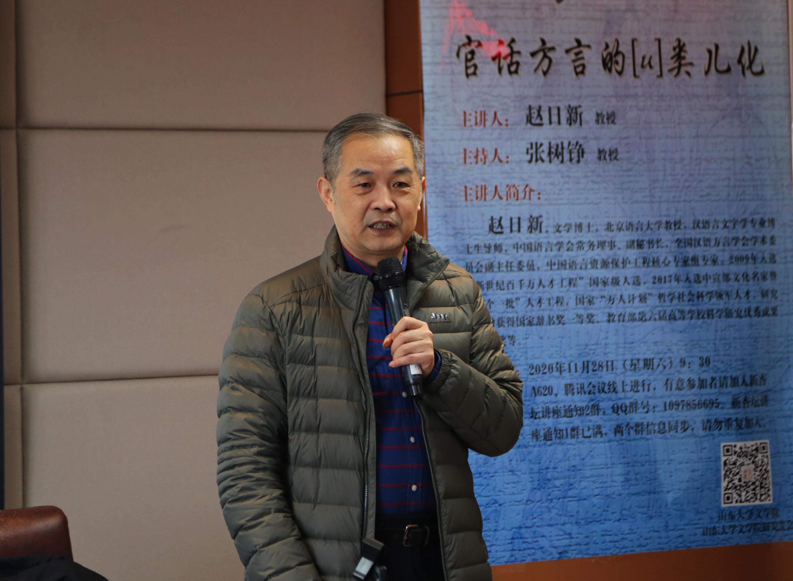 讲座开始前,张树铮教授致辞,简要介绍了赵日新在汉语言文字学专业的学术成就,并希望同学们以赵日新员工为榜样,努力成才。