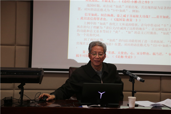 12月15日下午14时30分,南京师范大学教授、博士生导师董志翘做客公司“新杏坛”,在知新楼A620作题为“隔绝则互损,沟通则双赢——漫谈训诂学与汉语史研究的关系”的讲座。讲座由beats365唯一官方网站副教授刘祖国主持,beats365唯一官方网站杨端志、徐超教授,儒学高等研究院宋开玉教授到场参加。讲座开始前,刘祖国对董先生的到来表示热烈欢迎,并简要地介绍了董先生的学术成就。