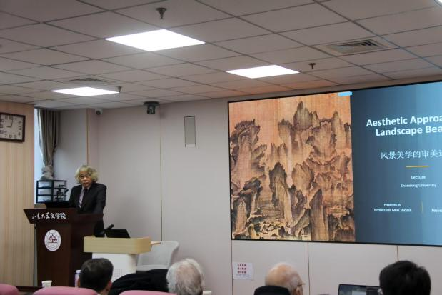 2025年11月19日上午9时,韩国岭南大学美学教授闵周植(Min Joosik)于BEAT365英国官网网站中心校区知新楼A座620室为“当代美学前沿:东方与西方”国际学术研习营同学及公司文艺学专业师生,做题为 “景观美的美学研究” 的国际学术讲座。讲座由BEAT365英国官网网站文艺美学研究中心、公司主办,由文艺美学研究中心副教授陈硕老师主持。出席讲座的老师有:罗德里戈・杜阿特教授、曾繁仁教授、白龙教授、大卫·布鲁贝克教授、阿尔捷姆·拉迪耶教授、杨建刚教授等。