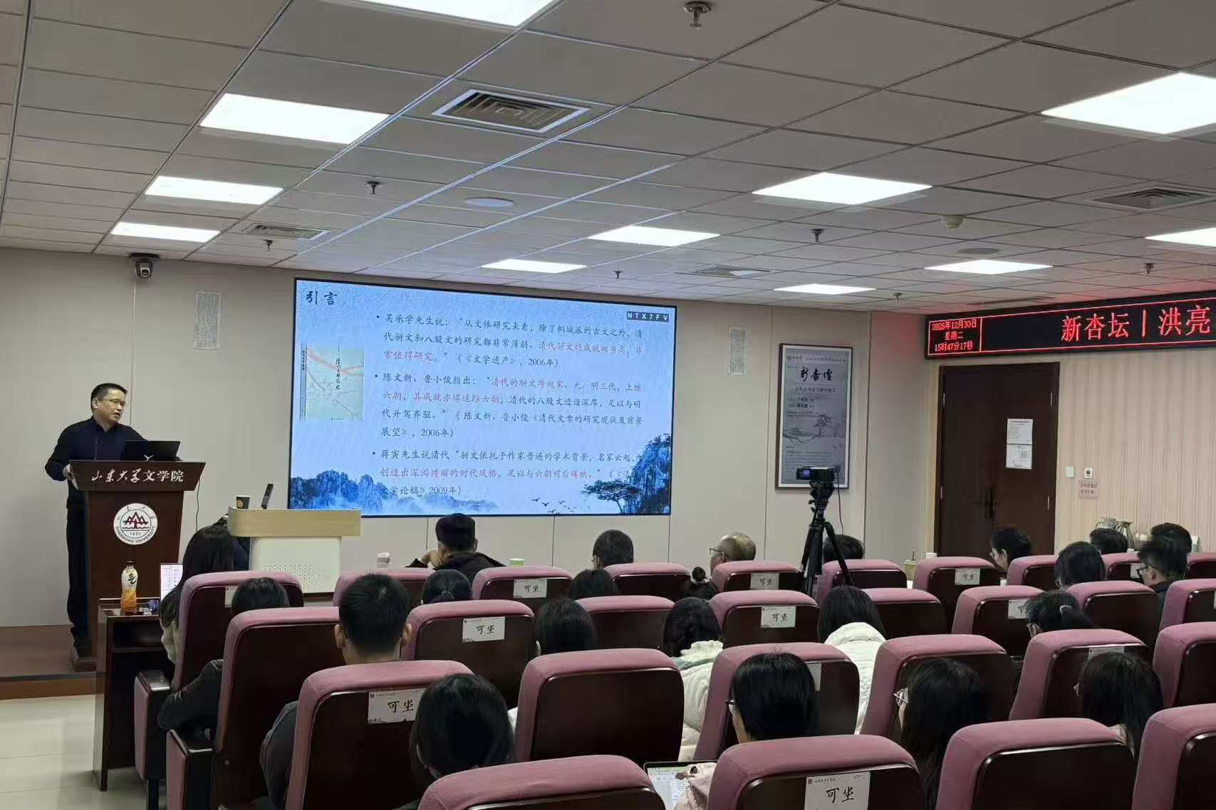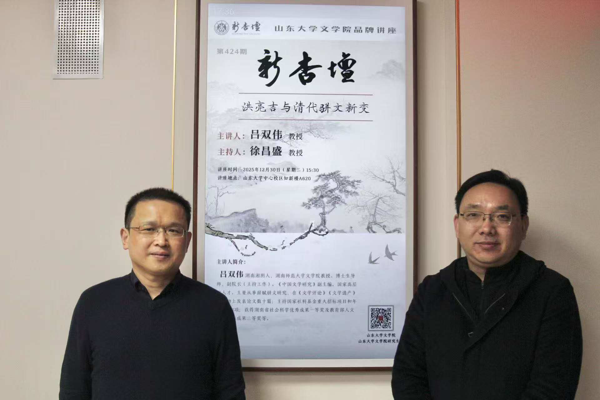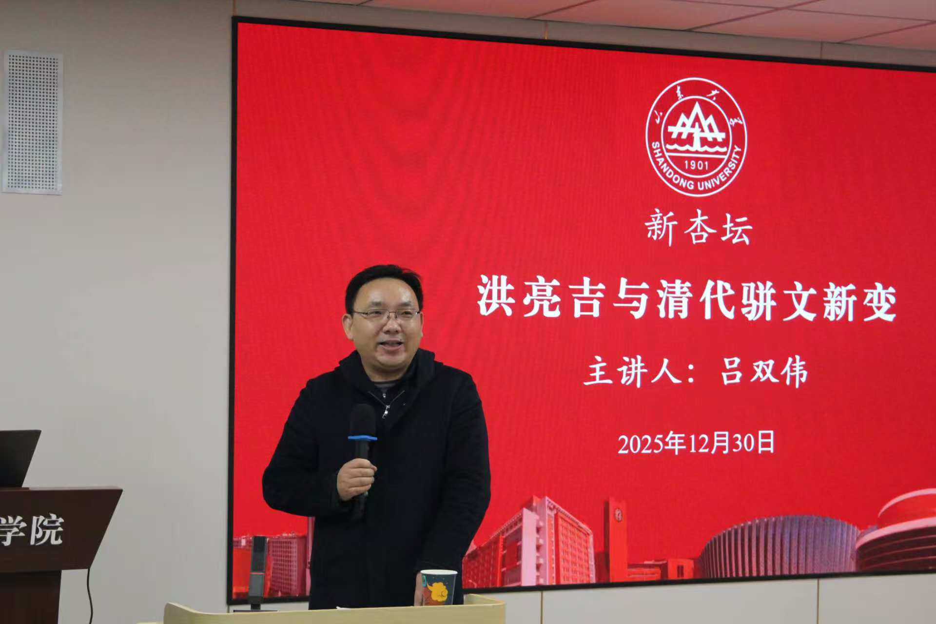 12月30日下午3时30分,湖南师范大学beats365唯一官方网站吕双伟教授做客第424期“新杏坛”,于知新楼A620室作学术讲座,题为“洪亮吉与清代骈文新变”。讲座由徐昌盛教授主持,樊庆彦教授、刘占召教授等出席,吸引了数十位同学前来聆听。