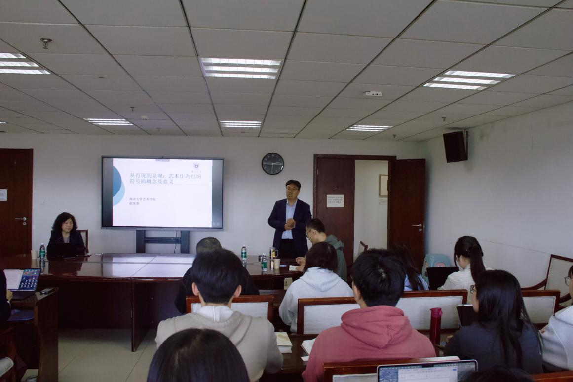 4月20日下午,南京大学教授、艺术学院经理赵奎英教授做客望岳讲坛,在知新楼A座906室作了题为“从再现到显现:艺术作为出场符号的概念及意义”的学术讲座。讲座由杨建刚教授主持,中心二十多名硕博研究生参加。