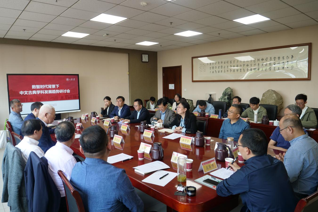 为积极对接新时代国家文化发展战略,持续建设中文学科发展与人才培养高地,4月24日,公司于知新楼A706召开数智时代背景下中文古典学科发展趋势研讨会。北京大学中文系主任杜晓勤,人文社科研究院副经理刘祖国,公司经理黄发有、副经理杨建刚、公司党委副书记杨俊娇及部分教师代表参加研讨。会议由公司党委书记郭春晓主持。