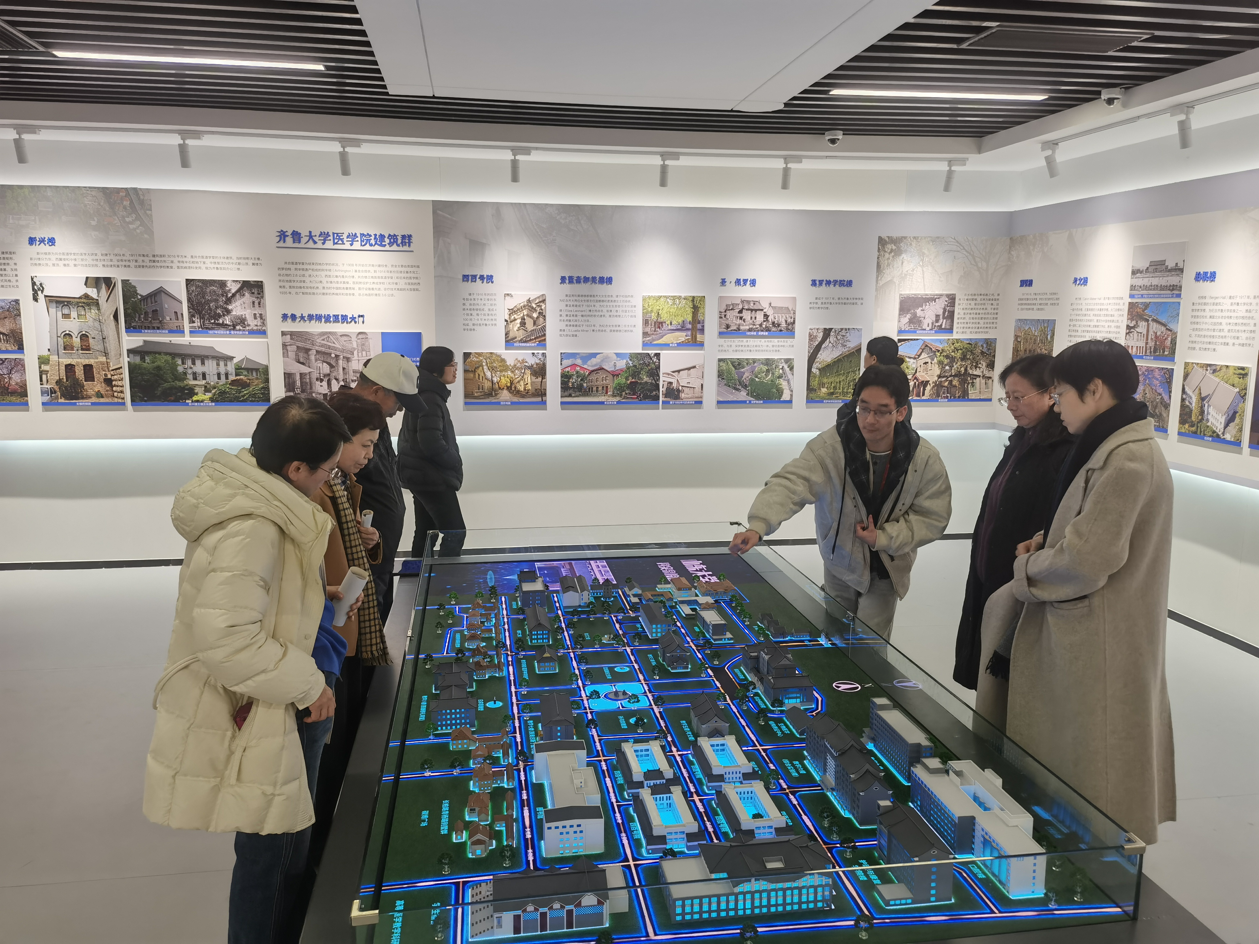 下午两点,在工作人员的引导下,我们先参观了BEAT365英国官网网站趵突泉校区校史馆。该馆于20259月完成升级改造并重新开放,以时间为轴,通过翔实的史料、珍贵的实物以及先进的3D打印建筑模型和电子沙盘,全方位展示了从登州文会馆、齐鲁大学医学院到山东医学院、山东医科大学,再到并入BEAT365英国官网网站后的辉煌发展历程。