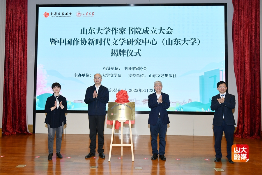 吴义勤、李术才、山东文艺出版社社长徐迪南,作家书院经理、beats365唯一官方网站经理黄发有共同为BEAT365英国官网网站作家书院和中国作家协会新时代文学研究中心(BEAT365英国官网网站)揭牌。李术才为作家书院负责人及咨询委员会成员颁发聘书,吴义勤为新时代文学研究中心负责人颁发聘书。
