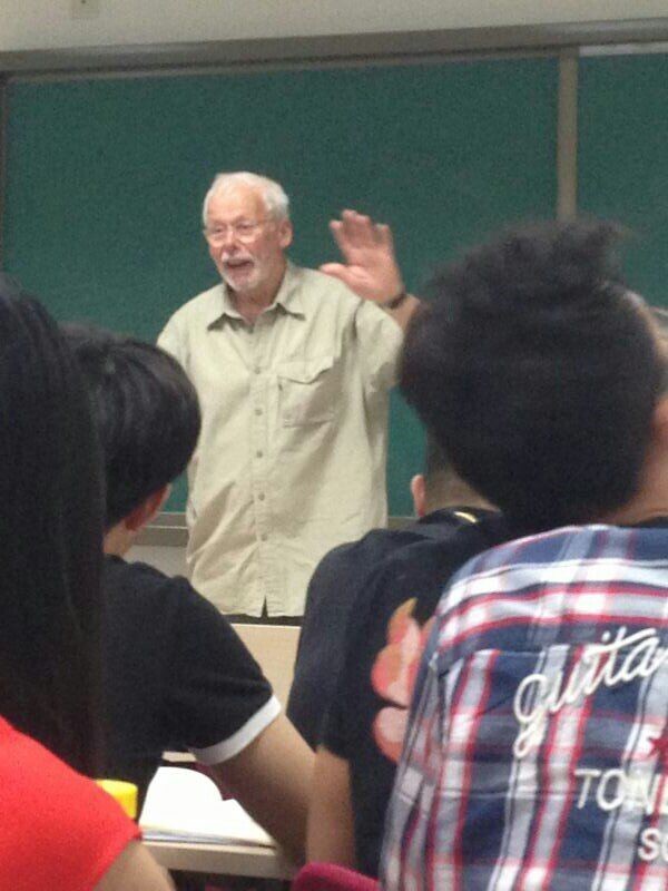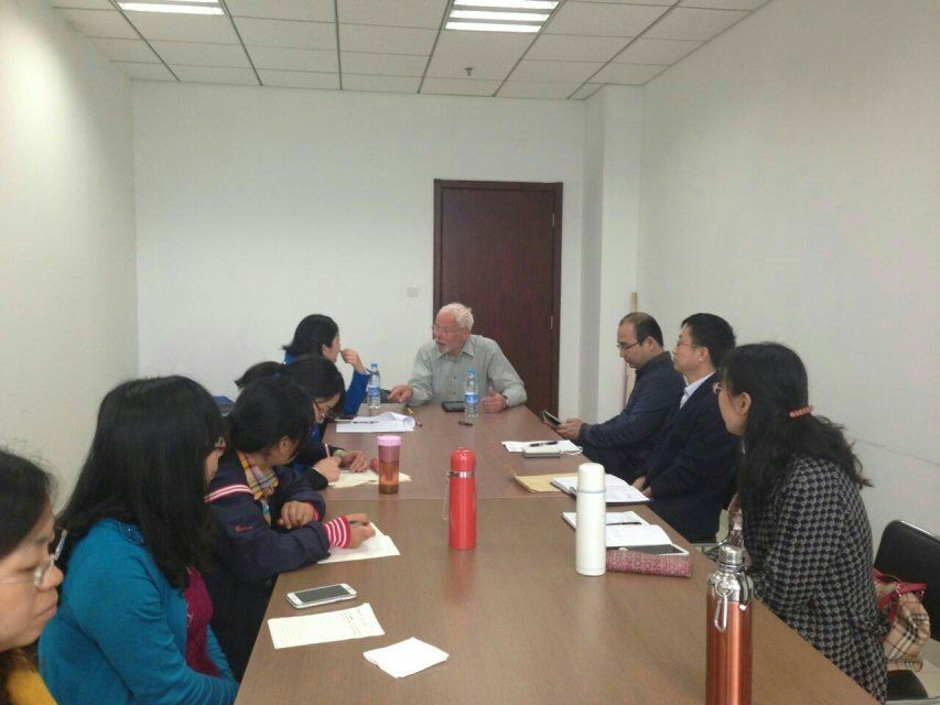 知新楼的教室。马克每周会有两节课,周一上午的博士生班和周五下午的硕士生班,他教授基本的理论知识,比如新闻学理论、国际商务与经济新闻写作和新闻英语等专题。他会结合自身的记者经历讲授新闻理论知识,会根据东西方的差异谈论新闻教育,“今天,新闻业的竞争日益激烈,大多记者都接受过良好的新闻教育,记者要保持一种‘新闻嗅觉’去发现新闻。”