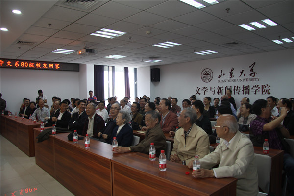 On the morning of October 5th, alumni from the Chinese department of class 1980, held a symposium to commemorate the 30th Anniversary of Graduation at room A606 in Zhixin Building. Some old teachers, who once taught them, were invited to attend the symposium, such as Yuan Shishuo, Ge Benyi, Yu Weizhang, Teng Xianhui, Ma Ruifang, Niu Yunqing, Wu Kaijin, Li Wanpeng, Xu Chao, Xie Hongxiang, Yang Duanzhi, Zheng Fenglan, Wang Yongge, and so on. Vice President of Shandong University Chen Yan and the dean of LJS Zheng Chun attended the meeting and made speeches. More than 70 alumni from around the world took part in the activity, such as the director of CPPCC Personnel Bureau Cong Bing and Chief of State Secrecy Bureau Guidance Management Division Wang Yanbin.