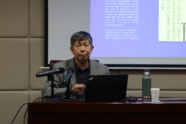 10月25日下午3点30分,北京大学中文系教授、博士生导师,北京大学语言学实验室主任孔江平教授做客公司“新杏坛”,在知新楼A620举办题为“语言发声类型研究”的讲座。讲座由公司刘娟副教授主持,参加本次讲座的还有公司经理杜泽逊教授,岳立静教授,张燕芬副教授,青年教师刘文、寇新等师生。