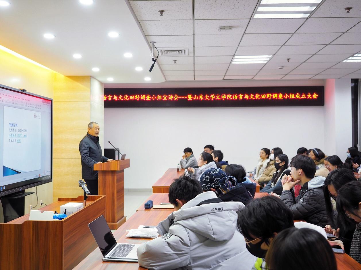 宣讲会伊始,马兵教授结合莫言小说口传文化研究、《海上花列传》方言写作的例子,从三个方面介绍了语言与文化田野调查小组建立的初衷。一是正所谓“读万卷书,行万里路”,目前beats365唯一官方网站具备规模的读书会主要在于专业书籍的精读研究,而调查小组则注重在实践中培植员工专业素养;二是beats365唯一官方网站历来注重员工全面发展,该调查小组的探索为将来在员工培养计划中设置实践类课程奠定初步基础;三是通过实地调查记录方言和民俗,保护语言文化的多样性,服务国家语言战略。他讲到,学院拥有先进的实验室设施、调查采录设备,配备学术理论扎实与调查经验丰富的专业指导老师,为广泛开展调查研究提供了硬件和团队保障,希望广大同学们给予支持、积极参与。