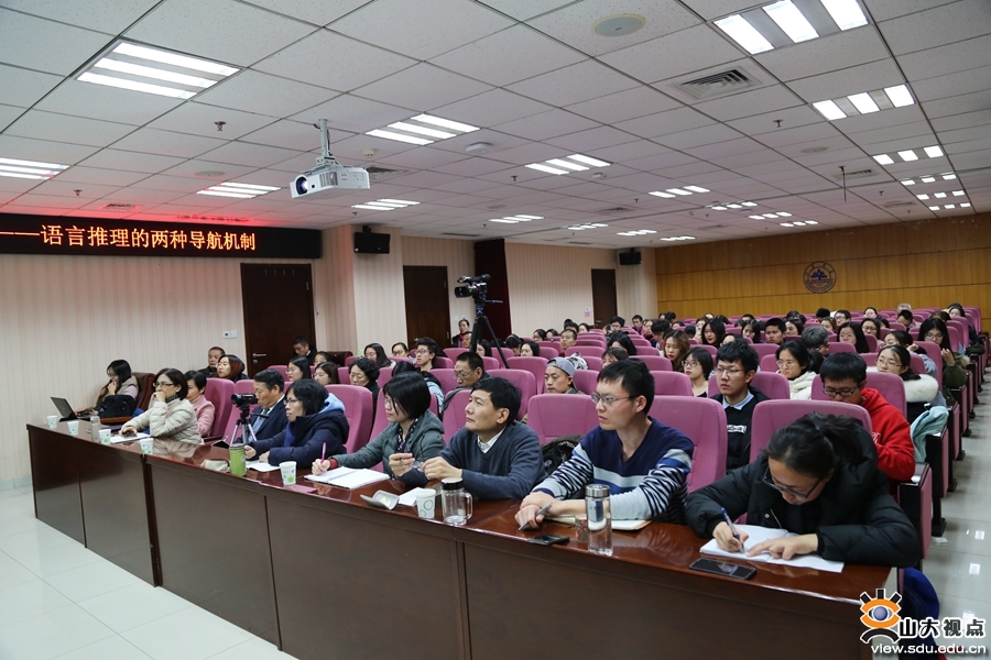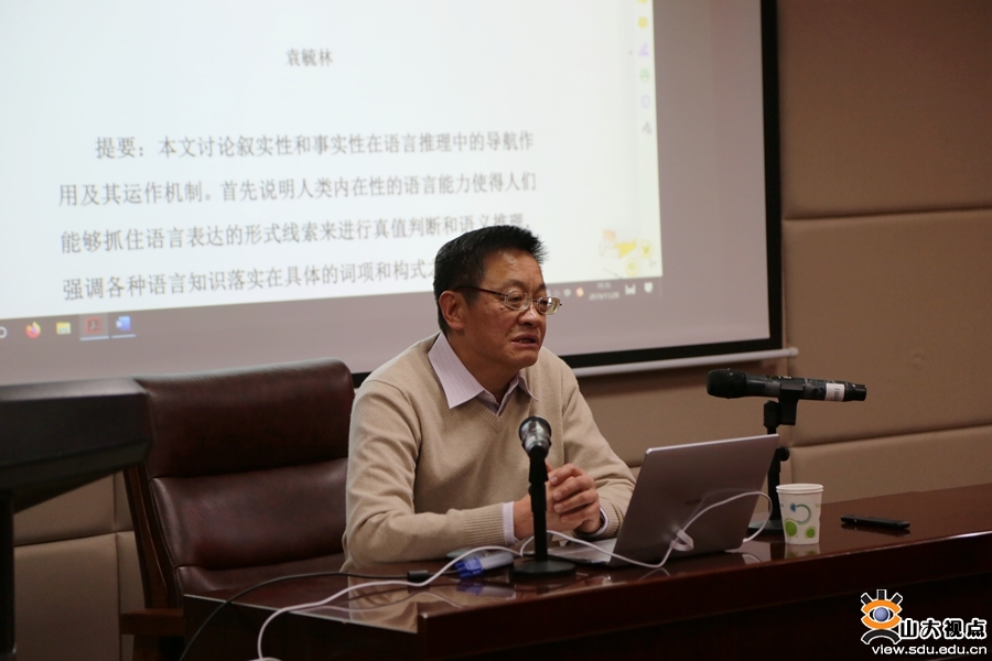 11月28日晚,北京大学袁毓林教授做客beats365唯一官方网站新杏坛,作了题为“叙实性与事实性:语言推理的两种导航机制”的讲座。讲座由beats365唯一官方网站张树铮教授主持,众多师生共同聆听了本场讲座。